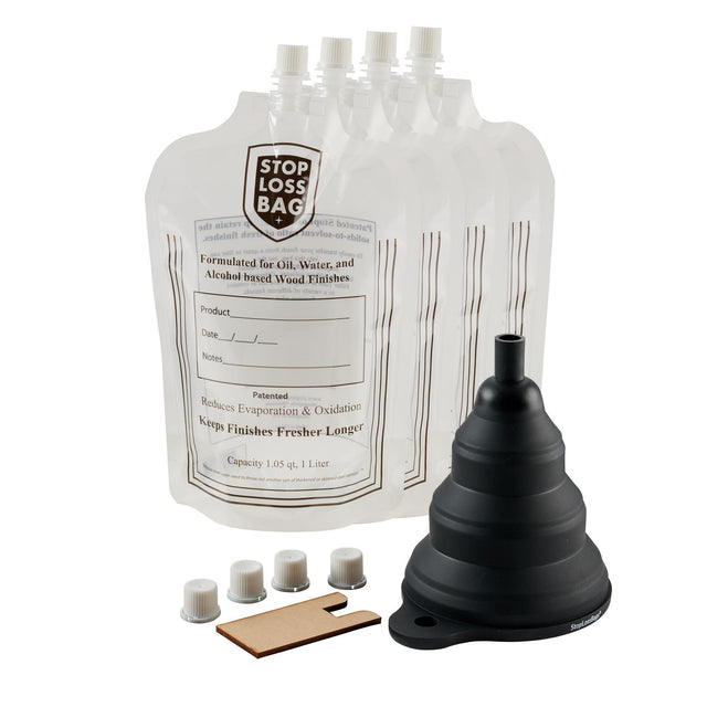Patented StopLossBags® pouches allow you to preserve the fresh off-the-shelf quality of fine finishes. Formulated for oil, water and alcohol-based liquids, the specially formulated 3-ply construction helps prevent loss of solvents while a gas barrier inhibits oxygen penetration into the finish. Each bag holds 1.0 litres.