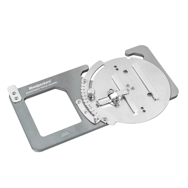 Woodpeckers Adjustable Track Square locks onto your Festool, Makita, or Triton guide rail and allows you to square the guide rail to your material instantly. It goes further with an adjustable, indexable protractor giving you any angle from square to 60° with positive stops every 5° and 22-1/2°. Track saws put table saw accuracy in the field for remodelers and trim carpenters. For the garage and shed woodworker, they cut the shop space required to handle sheet goods in half (compared to a table saw). They're really great at straight cuts, but "straight" usually isn't enough. When you need straight and square, clamp Woodpeckers Adjustable Track Square to your guide rail, align it to the edge of your stock and make your cut knowing you're guide rail is dead square.