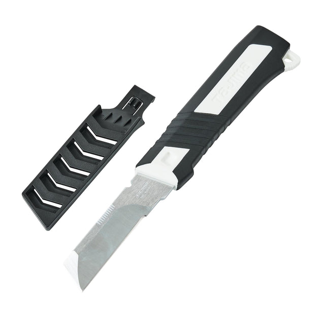 The Tajima Multi-purpose Knife is a great utility knife for all-round working. The knife features a solid core blade which is formed from one continuous piece of stainless steel and means it can be used with a hammer for chisel-like tasks. A great tool that can be kept in your pocket thanks to the blade cover.