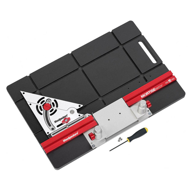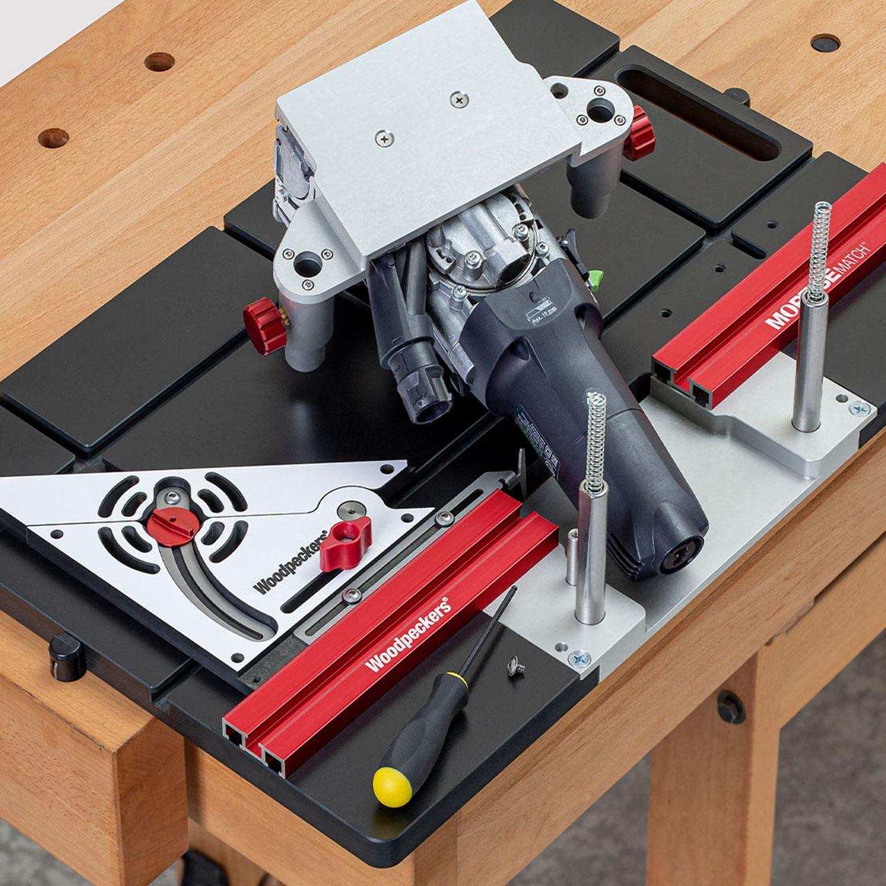 If you're a Domino user, or have been thinking about becoming a Domino user, Woodpeckers MortiseMatch completes your setup, simplifying joint alignment, increasing the range of material thickness, working with narrow material both square and mitred, and taking the weight of the machine off your hands during long production runs.