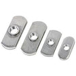 Oval Nut 10 Pack include 1/4"x20 oval nuts that are 7/16" wide (like a 1/4" bolt head), but unlike a conventional nut the thinner oval nut will slide easily in low-profile 1/4" T-Track.