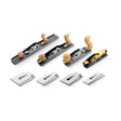 The Melbourne Tool Company Low Angle Plane Kit combines three essential hand planes to get started in woodworking. It includes a block plane for shaving end grain, completing touch-ups, and finish work; a smoothing plane ideal for finishing all types of wooden surfaces; and a jack plane for flattening, dimensioning, and edge jointing. Each plane comes with three different blades, 25 degree, 38 degree and 50 degree, making switching between tasks a breeze.