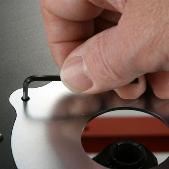 The 9.5mm thick cast, precision ground and anodised black solid aluminium top plate is very strong and flat and will not flex or bend in use. The plate measures 235mm x 298mm and will accommodate large diameter cutters up to 92mm and can be reduced down as low as 9.5mm using the included steel insert rings. All INCRA plates come with their own levelling system allowing for perfect alignment and levelling and fit our own INCRA, AUKTools and JessEm table tops or use our router insert plate template for home-made tables, for a perfect fit.
