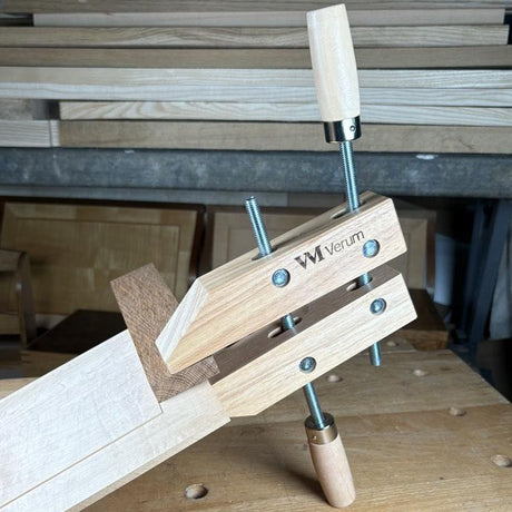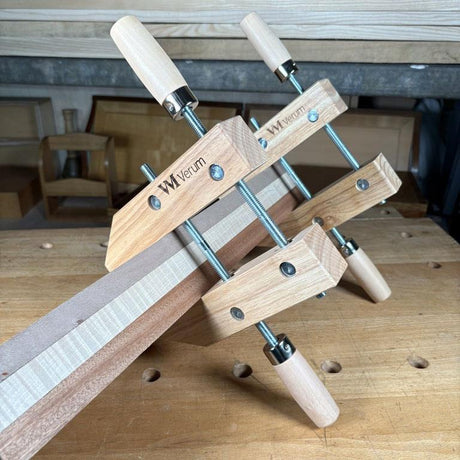 The Jorgensen Adjustable Handscrew Clamp 8" is crafted to ensure maximum strength and durability. Seasoned, straight-grain hard maple wood jaws marry with cold-drawn steel spindles and nuts with special double-lead threads. Together they create a handscrew clamp that holds tightly over broad areas, providing greater reach and a wider distribution of pressure than other clamps. The angle between the jaws can be adjusted to fit the work, allowing them to hold odd shapes easily. The clamps are easy to apply and remove quickly, and provide protection against marring of finished surfaces. Traditional seasoned hardwood handles are designed for comfort now and for years to come.