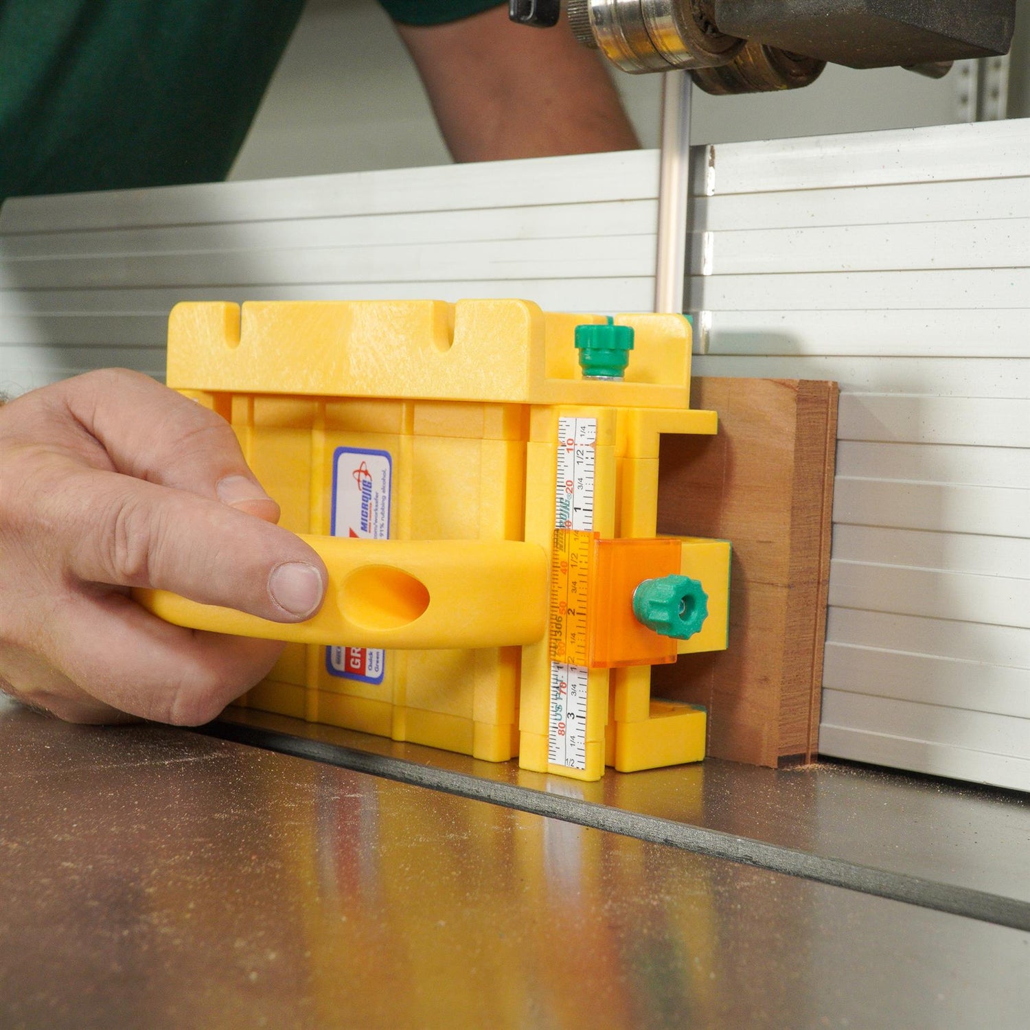 The Micro Jig GRR-RIPPER Pro 3D Pushblock with SafeRip Kit comes with 3 legs featuring patented Green GRR-RIP® non-slip material, built-in balance support, adjustable handle Includes stabilising plate and adjustable spacer.