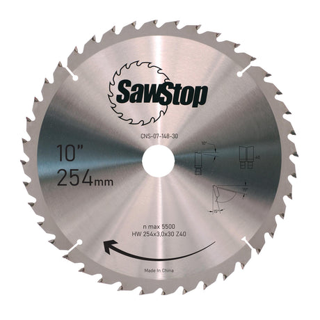 SawStop Titanium Series 40-Tooth Combination Table Saw Blade - 254mm/30mm Arbor
