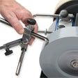 Small spindle gouges are quick and easy to insert with no fiddly washers to add or remove. The jig enables you to grind a bowl gouge with a swept-back bevel. An additional locking allows you to fix the Gouge Jig’s rotary movement at the required location.