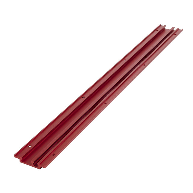 Our AUKTools Dual Track is made from very strong and durable red anodised aluminium featuring both 1/4” T -Track Slot and 3/4” Mitre Slot, making it very versatile. The pre-drilled track can be routed and mounted flush into most table tops. The T-Track allows the use of 1/4” hex head bolts that may be used for holding jigs, fixings and feather boards. The US standard 3/4” (19mm) mitre slot fits a range of accessories including our JessEm Paralign Featherboards, INCRA and JessEm Mitre Gauges and Micro Jig ZEROPLAY Guide Bars. The red extruded track not only looks great but offers excellent wear resistance.
