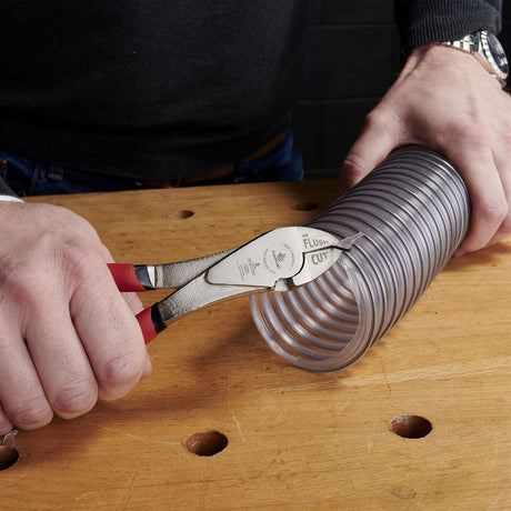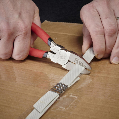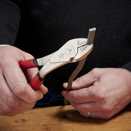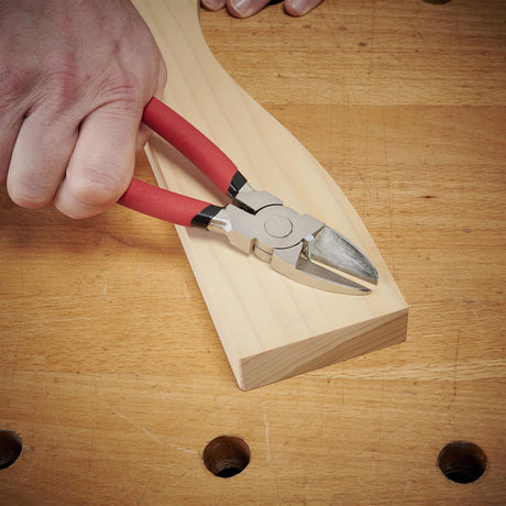 - Flat on one side and bevelled on the other, allowing you to draw the flat side across the reference piece to mark the edge perfectly