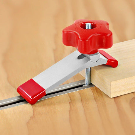 These AUKTools Hold Down Clamps slide into T-Track slots in the table tops and operate by simply pulling the lever to securely hold your workpiece. The clamping leg extends directly under the workpiece to apply even clamping pressure. These clamps are suitable for most standard T-tracks.
