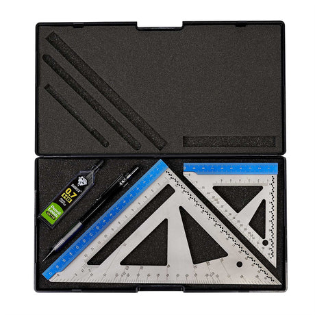 - A built-in protractor with guide slots at every 45°, 30°, 22.5°, and 5° interval.