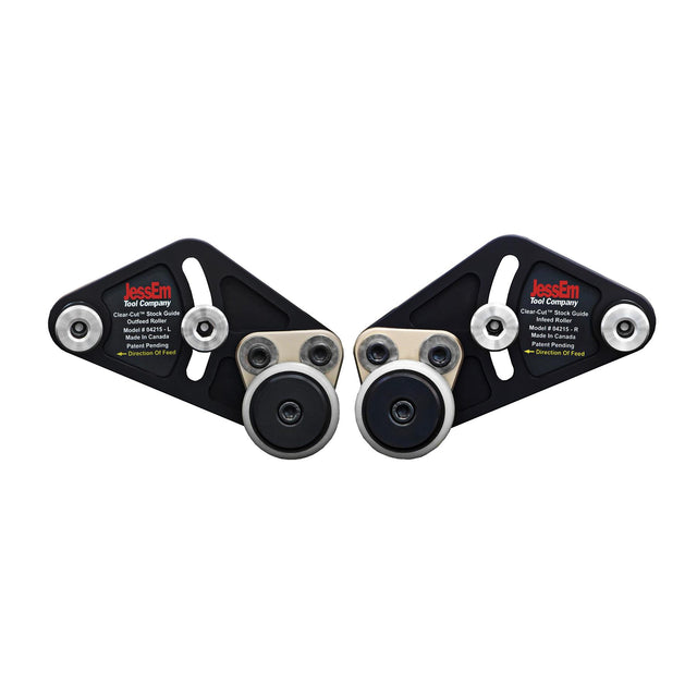 If you like hefty tools, you'll love the Clear Cut Stock Guides. The bodies and wheel carriers are machined from solid aluminium, and the generously sized knobs are stainless steel. The precision machined acetol resin wheels run on hardened steel hubs and roller bearings for a lifetime of use.