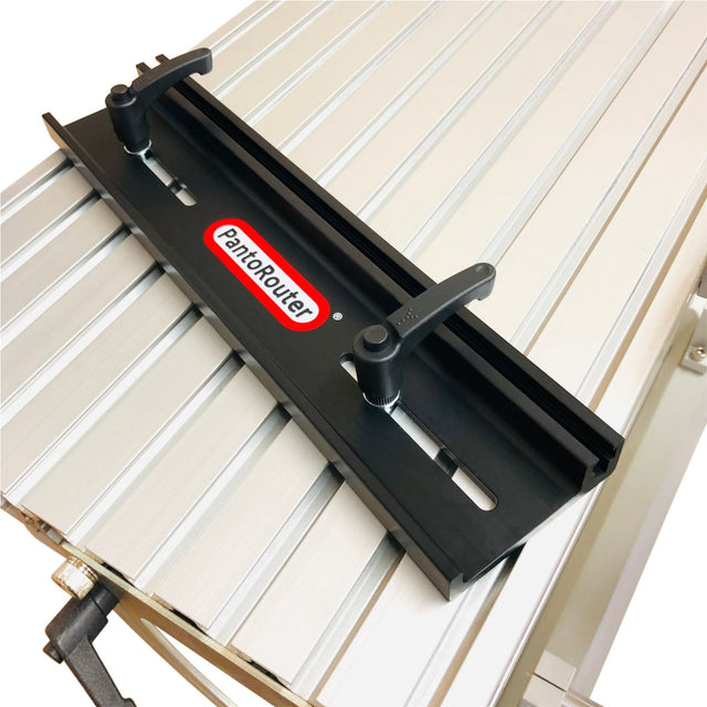 The PantoRouter Auxiliary Fence has long slots to allow positioning on the table at any angle. Use the Auxiliary Fence combined with the tilting table on the PantoRouter to achieve compound angles in minutes. The T-Slot on the edge can be used for home-made stops or reference points. The possibilities are endless!